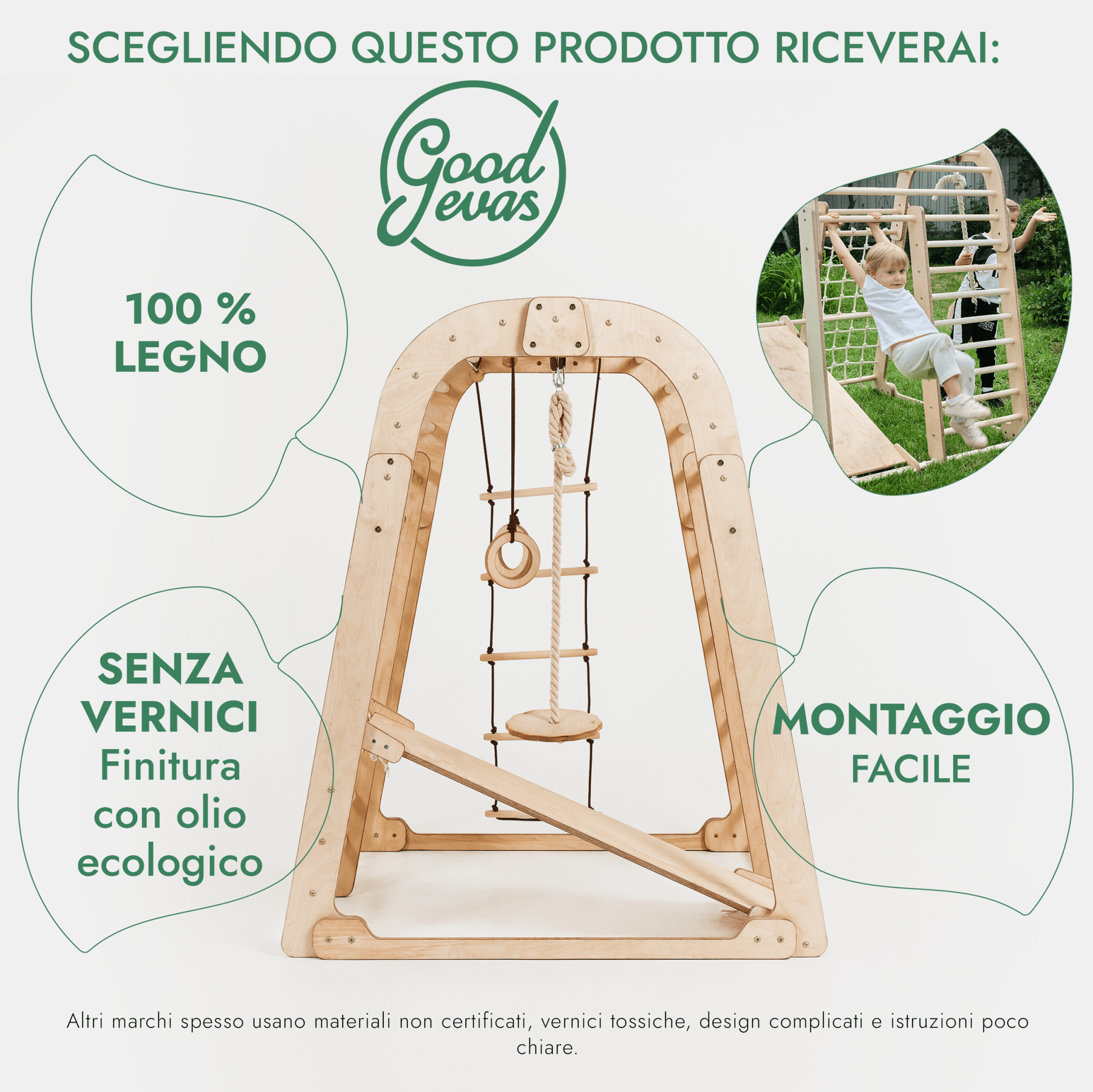 Parco Giochi 6 in 1 per Interni in Legno – Scivolo e Set di Altalene Inclusi - Goodevas IT